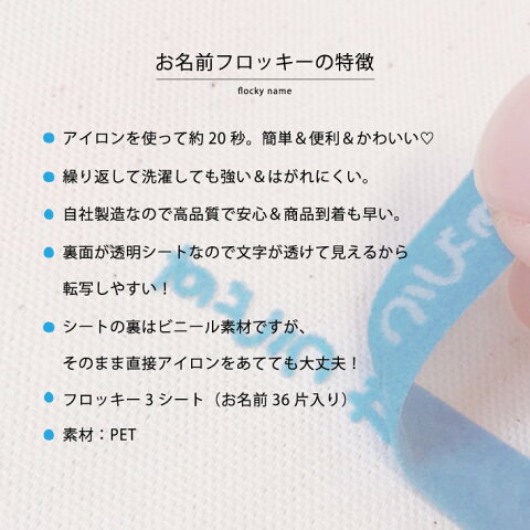 【商品について】 ■おなまえフロッキーの文字の大きさと枚数 ・文字幅 約5mm 36片(文字高は、文字数によって変わります) ■ひらがな・カタカナ・漢字10文字程度 ■日本製:自社加工 ■素材:PET ■営業日にかぎりますが最短当日発送可能です (朝9時までの注文!金曜日9時以降は次週の出荷となります。