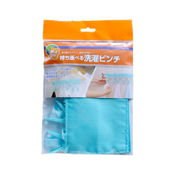 ■ハンガーやタオル掛けなど、棒状のものにサッと取り付けて使用できる、携帯用洗濯ピンチです。
